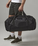 Adjustable webbing shoulder strap with pad, 2 large end pockets. Protective base feet.